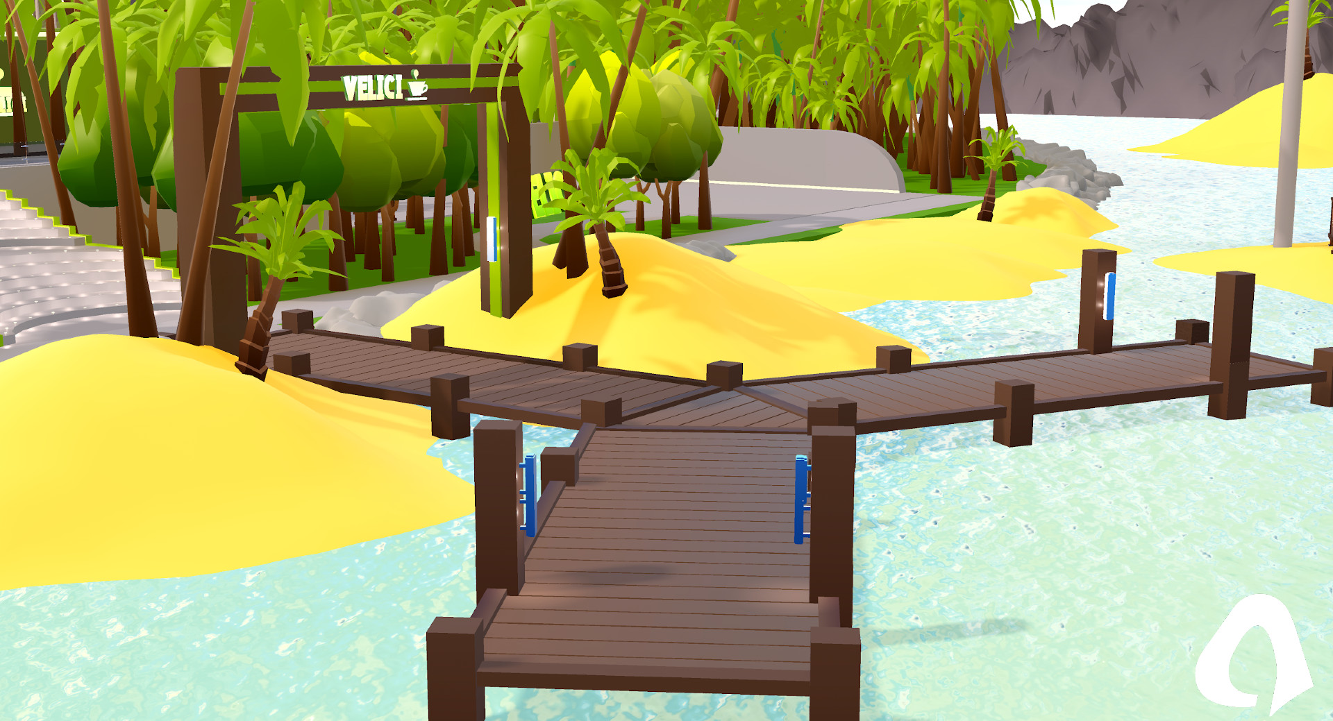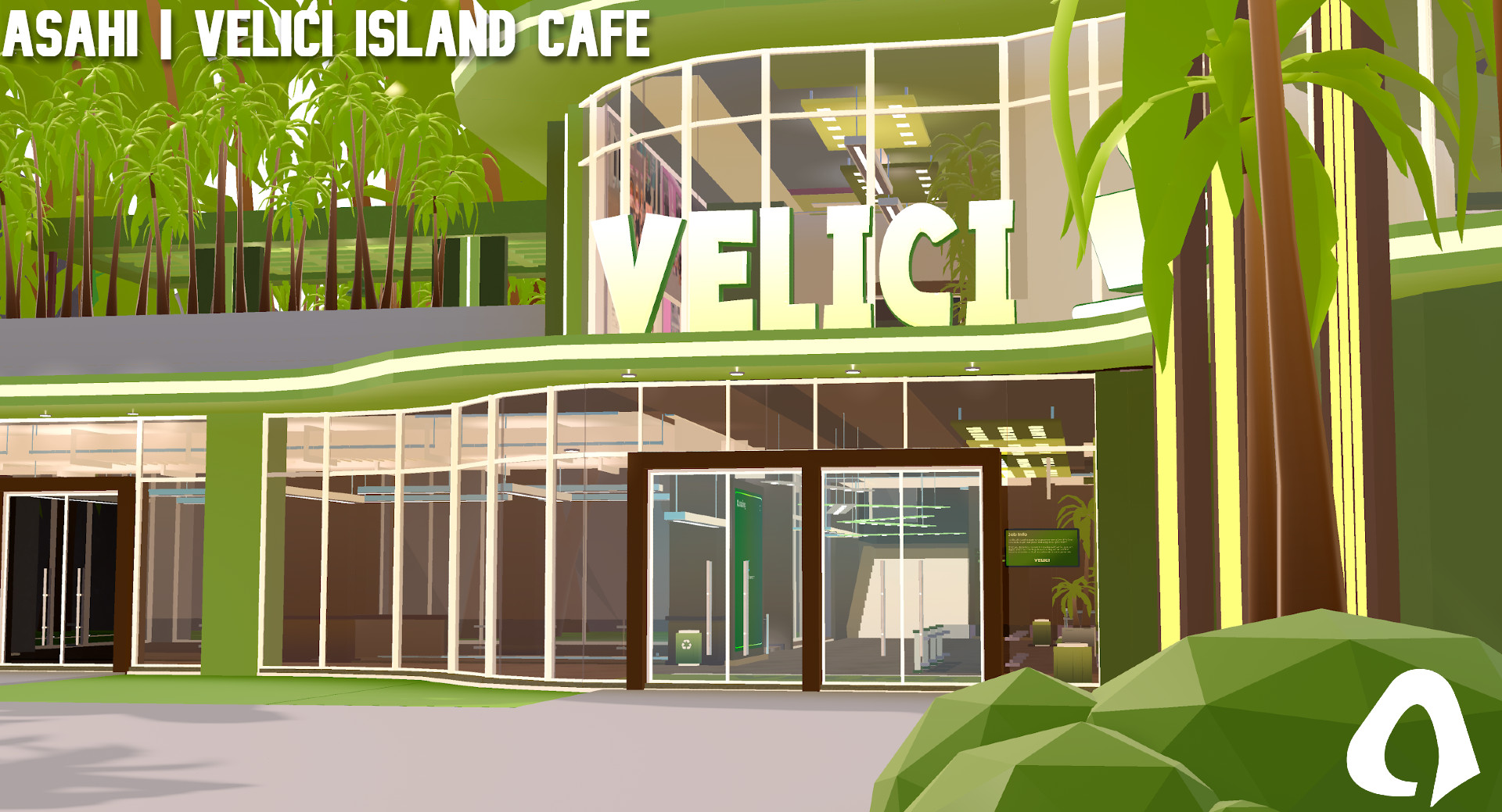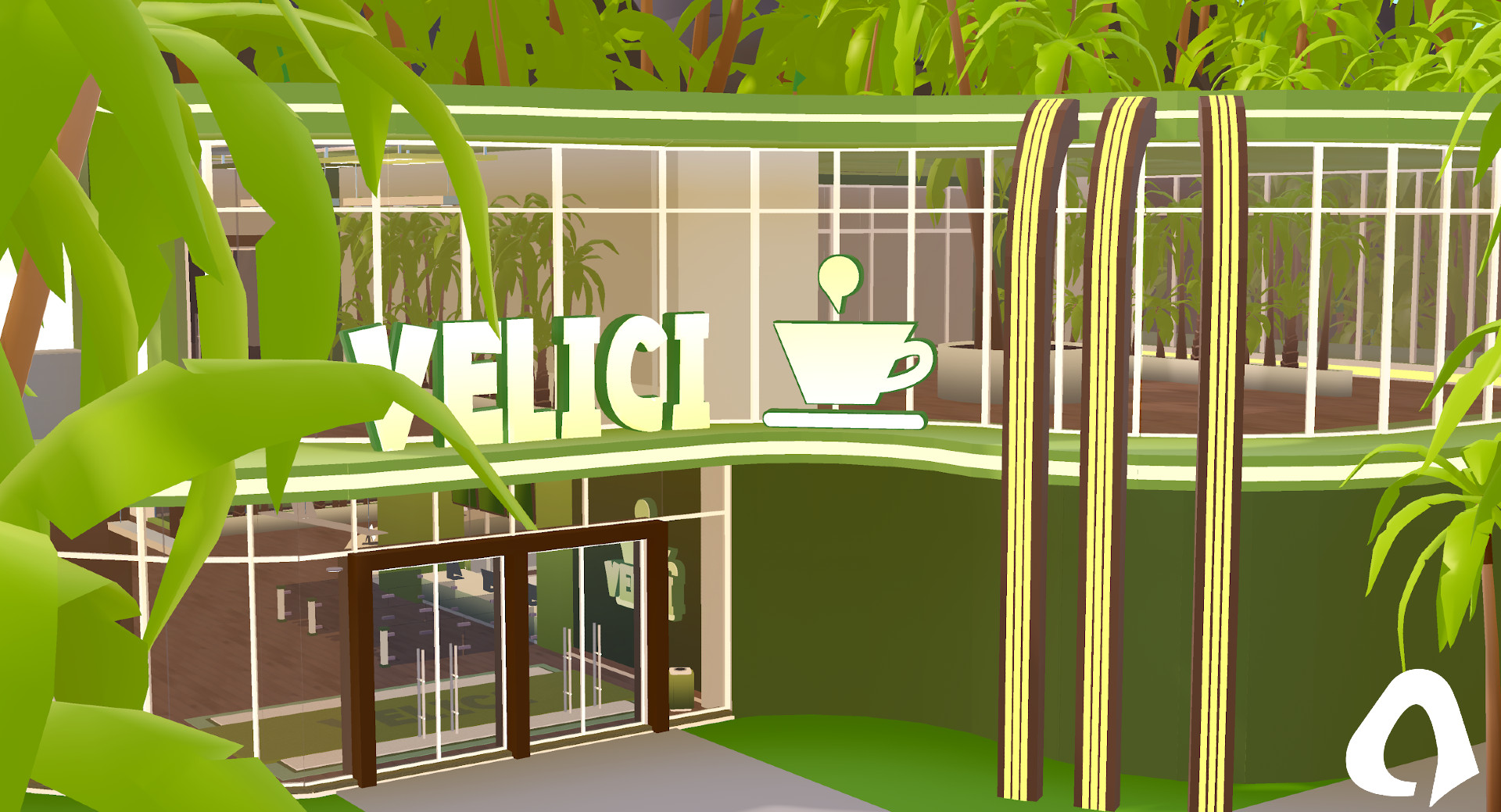 The Velici Island Café is a luxurious low-poly retreat with a detailed design and immersive features like cash registers and an NPC ordering system. Its fully equipped kitchen includes coffee and baking stations, perfect for creative dining experiences. With two spacious floors and a lush jungle theme adorned with palm trees, customers can relax in style. The café blends functionality and beauty, offering a tropical escape for both staff and guests.